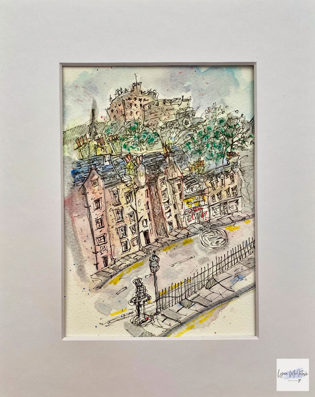Original watercolour & pen sketch of Candlemaker Row, Edinburgh.