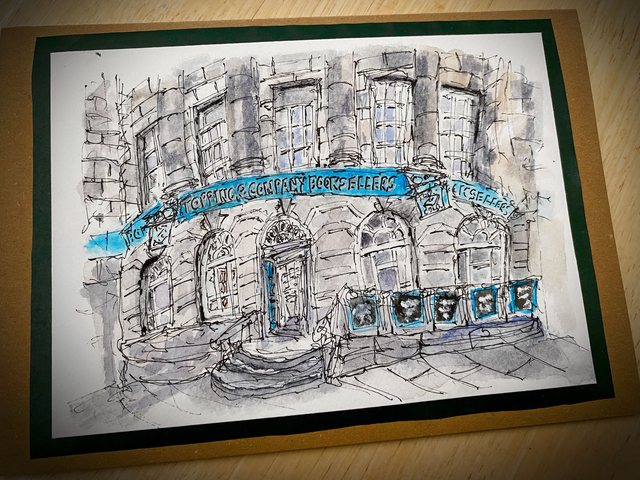 2 x original art cards - Topping & Co Bookseller / St Giles Cathedral